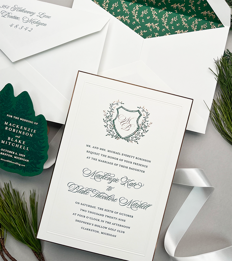 Liner: FP017 in Soft Penny Foil on Forest Text